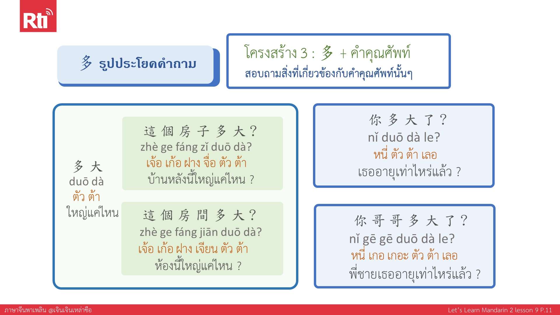 🔺 ปล. ส่งอีเมลมาที่ thai@rti.org.tw เพื่อขอรับเอกสารประกอบการเรียนภาษาจีนพาเพลิน คลิกฟังรายการเพิ่มเติมที่ https://youtu.be/ACnhjLOZRIQ