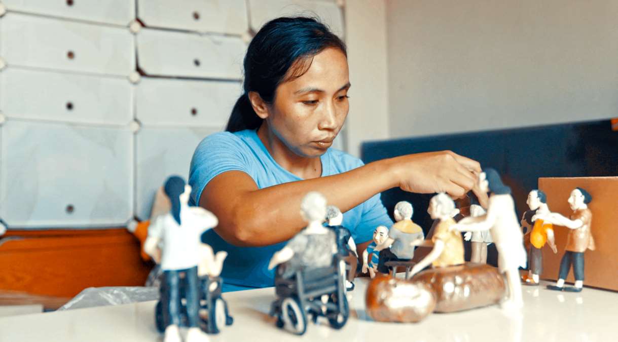 ฟิดาติ ผู้อนุบาลอินโดนีเซียใช้ดินเยื่อกระดาษสร้างสรรค์รูปปั้นของคนที่บ้านและในไต้หวัน ช่วยบรรเทาอาการคิดถึงบ้านได้บ้าง (ภาพจาก mnews.tw)
