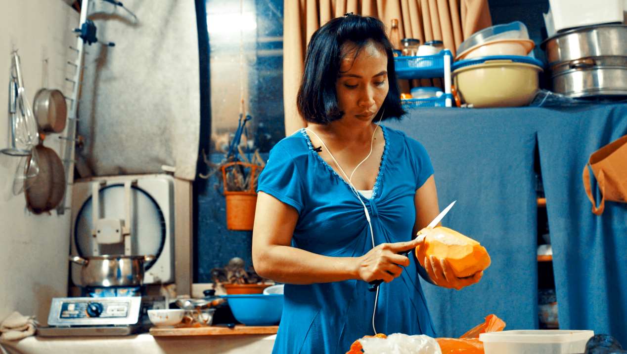 ปอกมะม่วงทีไร ฟิดาติจะคิดถึงต้นมะม่วงที่บ้านเกิดบนเกาะชวา อินโดนีเซียเสมอ (ภาพจาก mnews.tw)