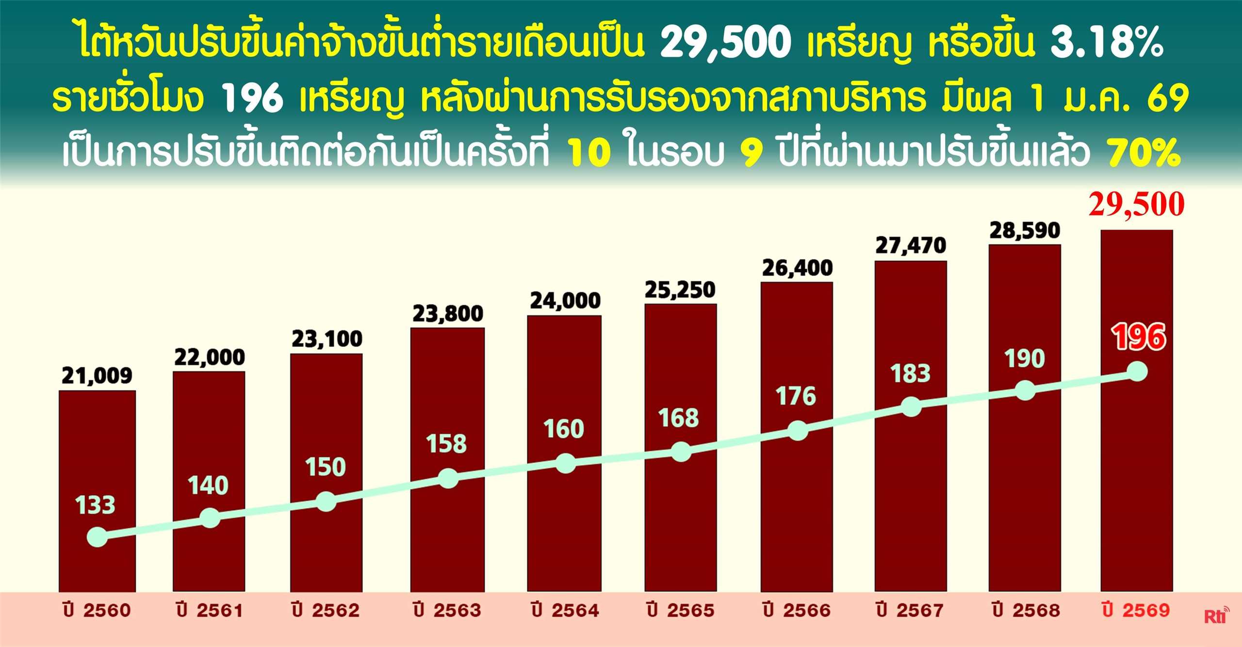 ๑. ค่าจ้างขั้นต่ำปรับขึ้นเป็น 29,500 เหรียญต่อเดือน เบี้ยประกันภัยแรงงาน 679 เหรียญต่อเดือน เบี้ยประกันสุขภาพเดือนละ 458 เหรียญ รวมเบี้ยประกันทั้งสองรายการเพิ่มขึ้น 36 เหรียญต่อเดือนจากปี 2568 และแรงงานต่างชาติที่มีรายได้ตลอดปีไม่เกิน 464,000 เหรียญไม่ต้องเสียภาษี หากนายจ้างหักล่วงหน้าไปแล้วจะได้รับคืนหลังจากยื่นแบบรายการเสียภาษีไปแล้ว 3-4 เดือน ส่วนที่เกินแต่ไม่ถึง 610,000 เหรียญ เสียภาษี 5%