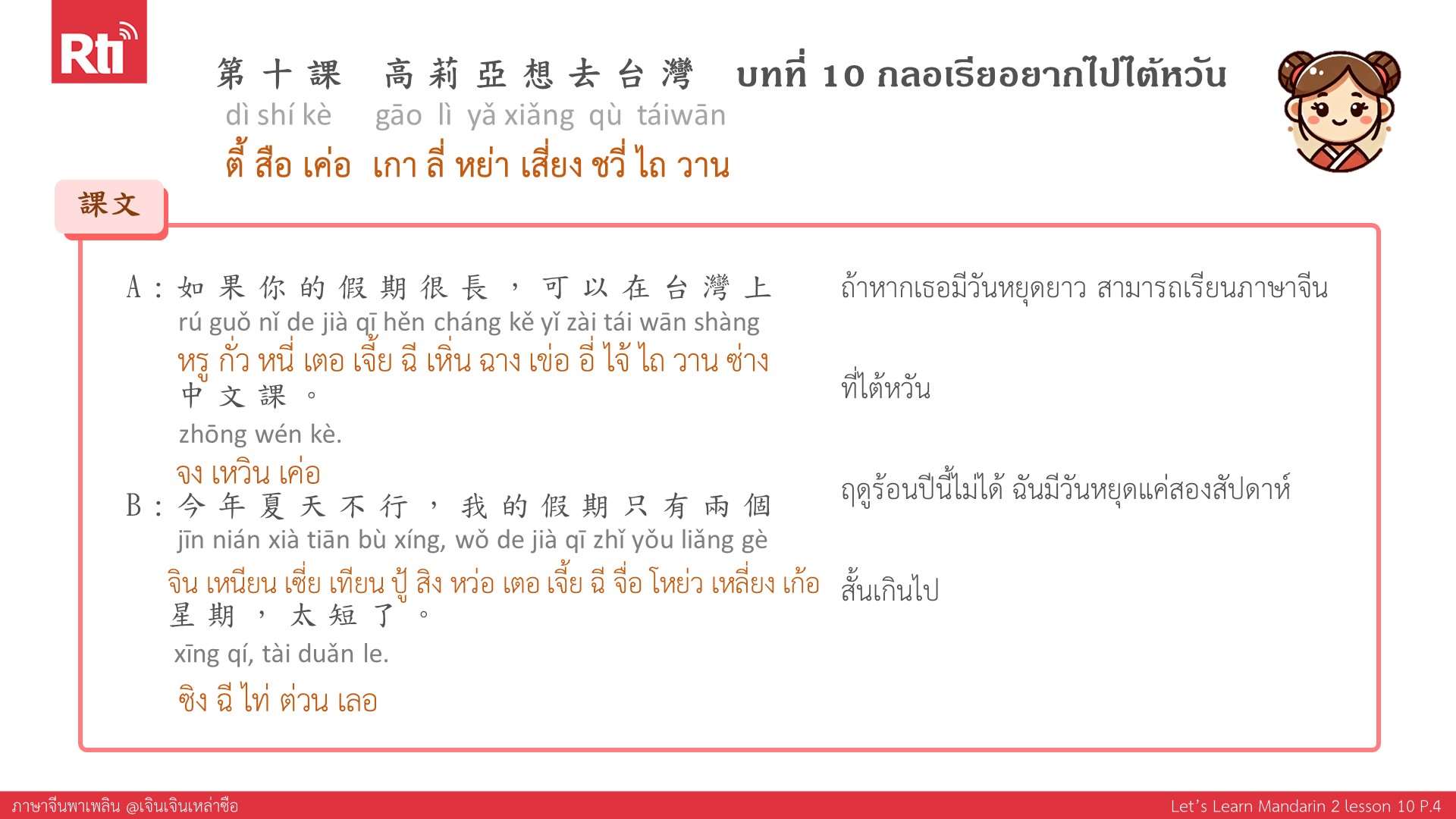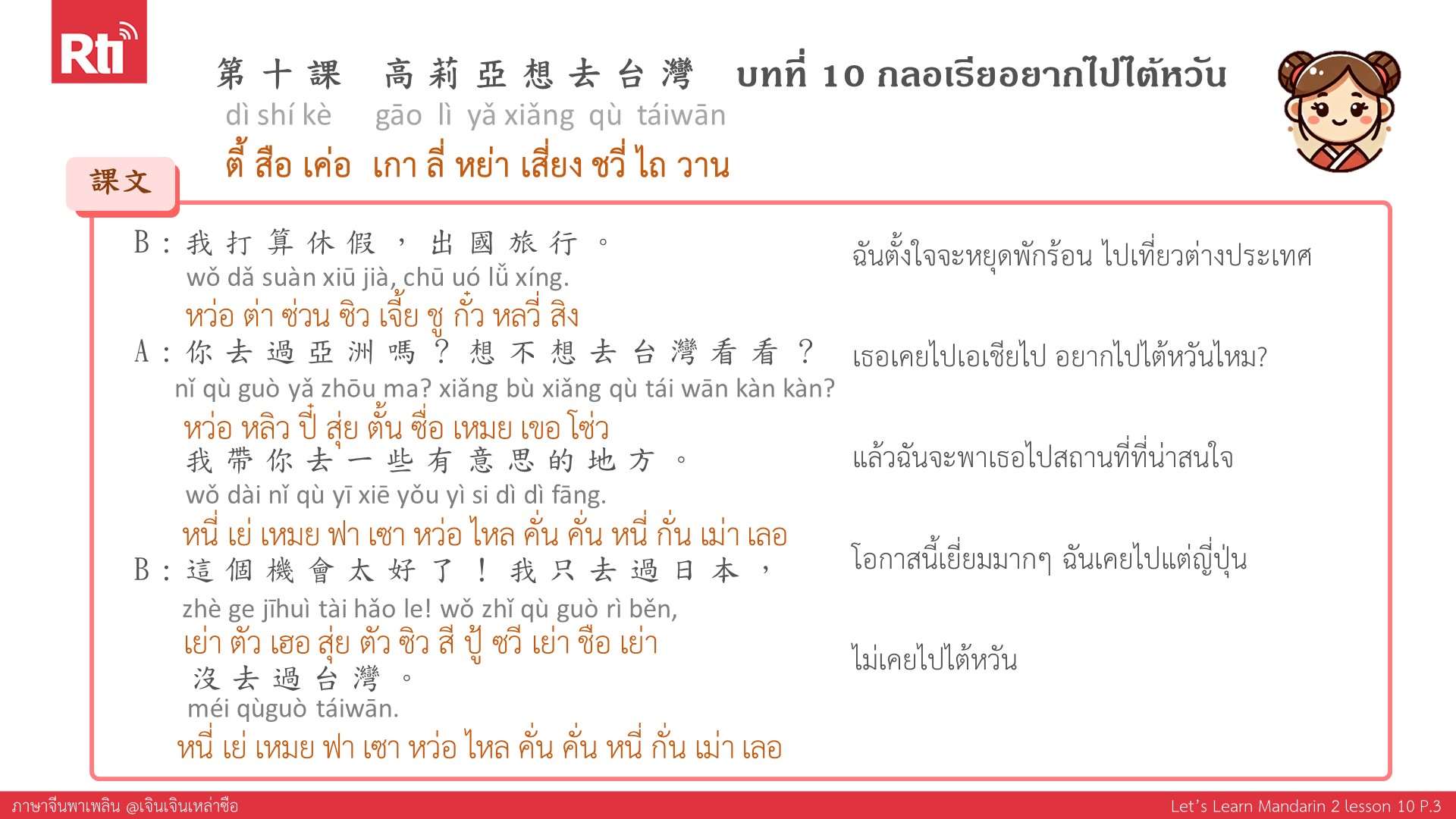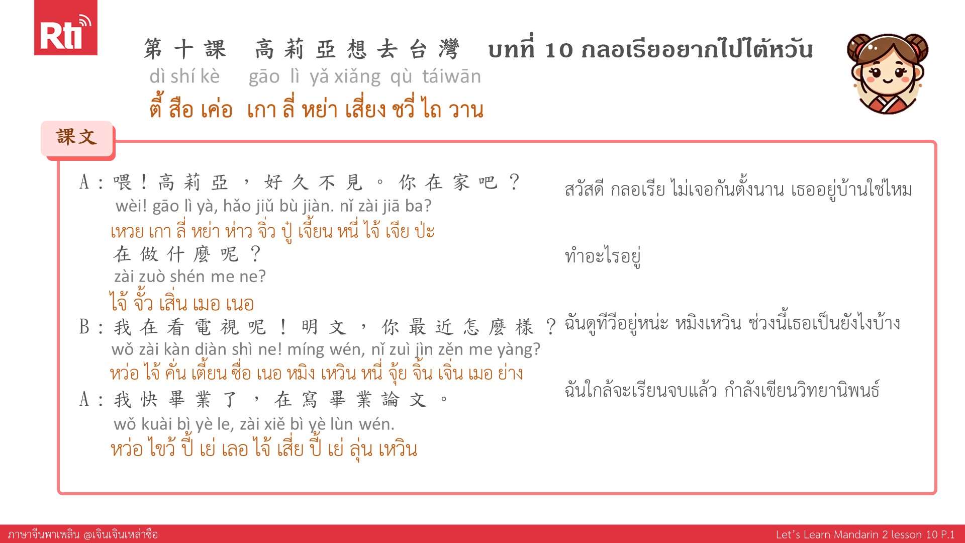 🔺 ปล. ส่งอีเมลมาที่ thai@rti.org.tw เพื่อขอรับเอกสารประกอบการเรียนภาษาจีนพาเพลิน คลิกฟังรายการเพิ่มเติมที่ https://youtu.be/9k-h2qGTVx4