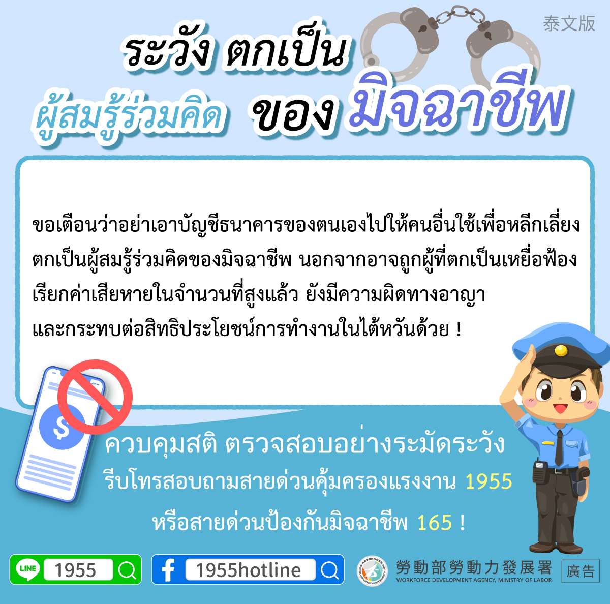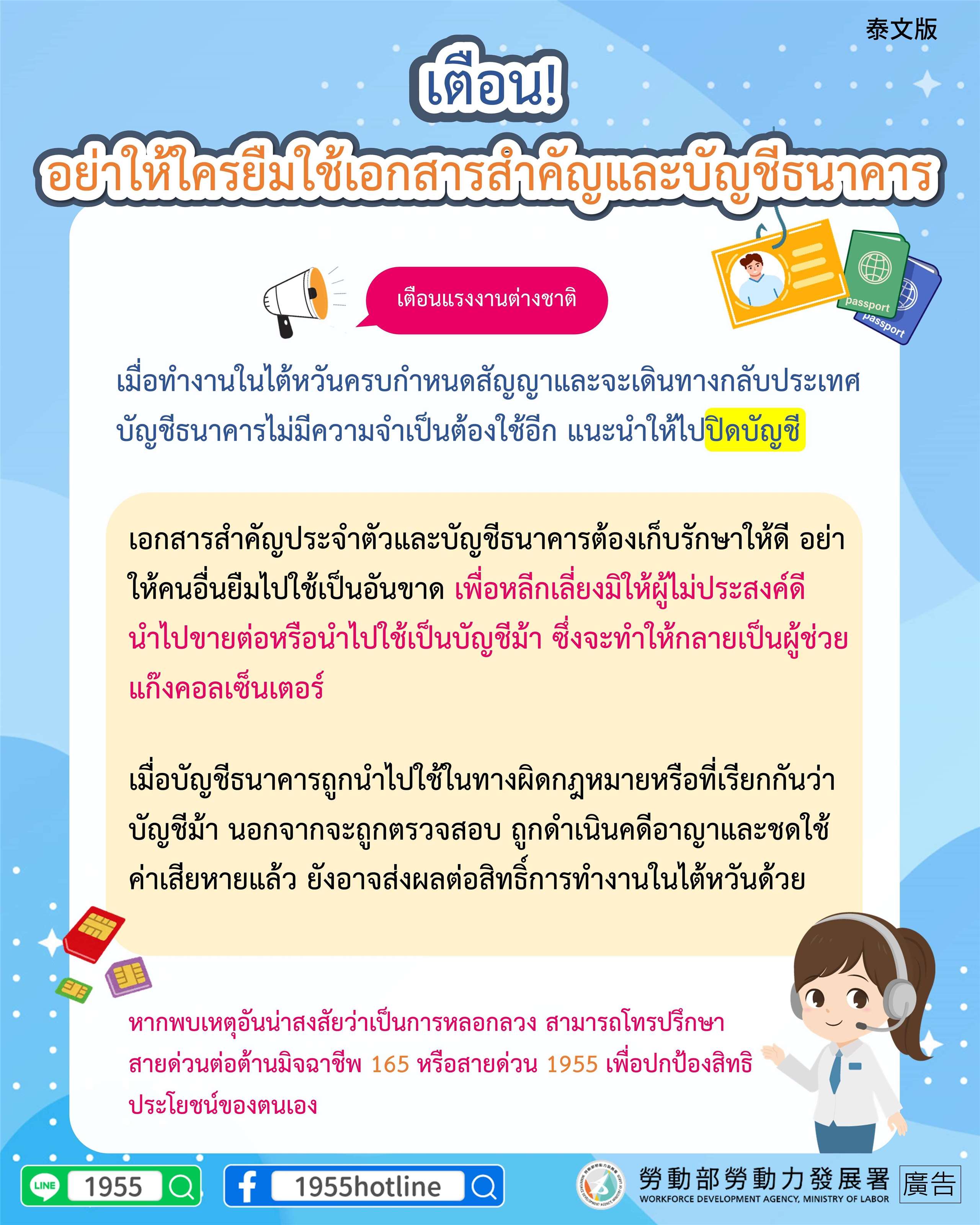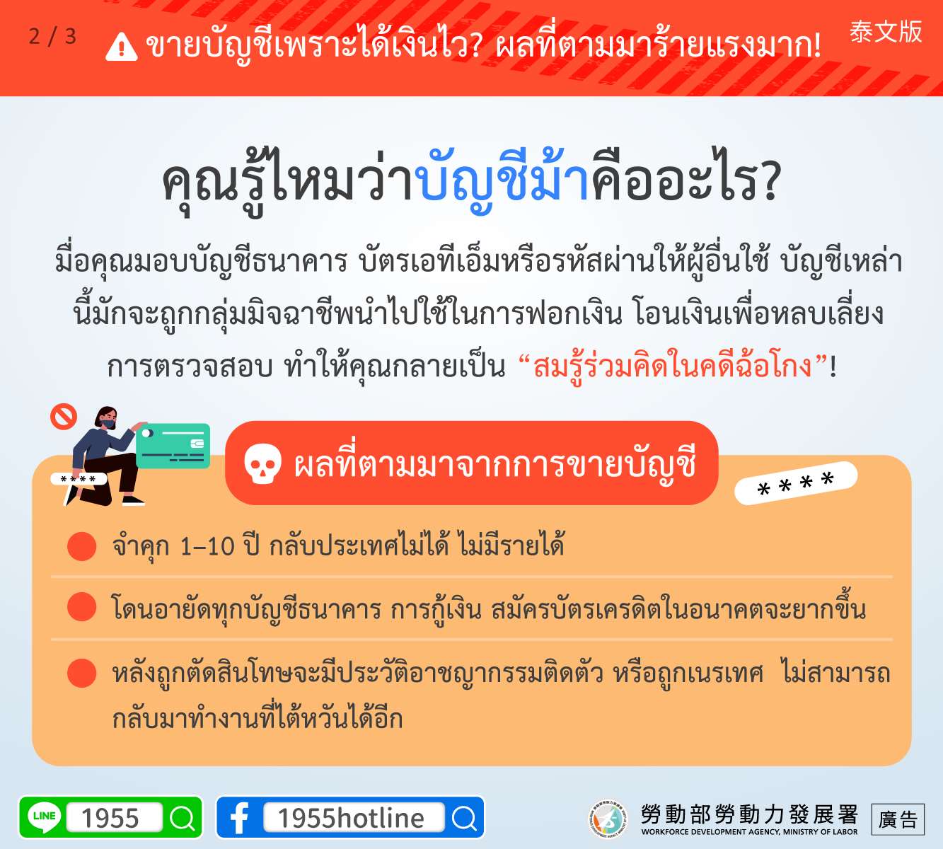 สื่อประชาสัมพันธ์เรื่องบัญชีม้าจากกรมพัฒนากำลังแรงงาน กระทรวงแรงงาน