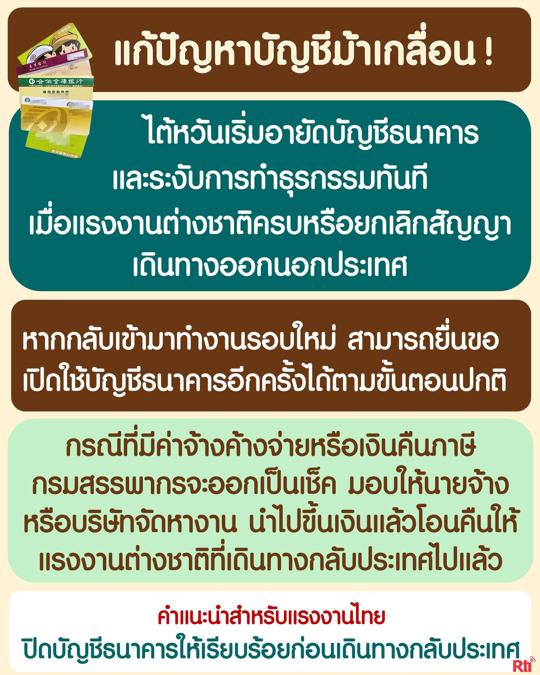 3. มาตรการใหม่แก้ปัญหาขายบัญชีม้าเกลื่อน! คณะกรรมการกำกับการเงินไต้หวันตัดสินใจอายัดบัญชีบัญชีธนาคารแรงงานต่างชาติเมื่อเดินทางออกนอกประเทศ