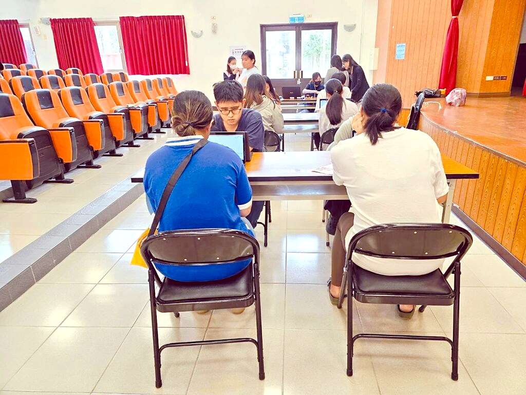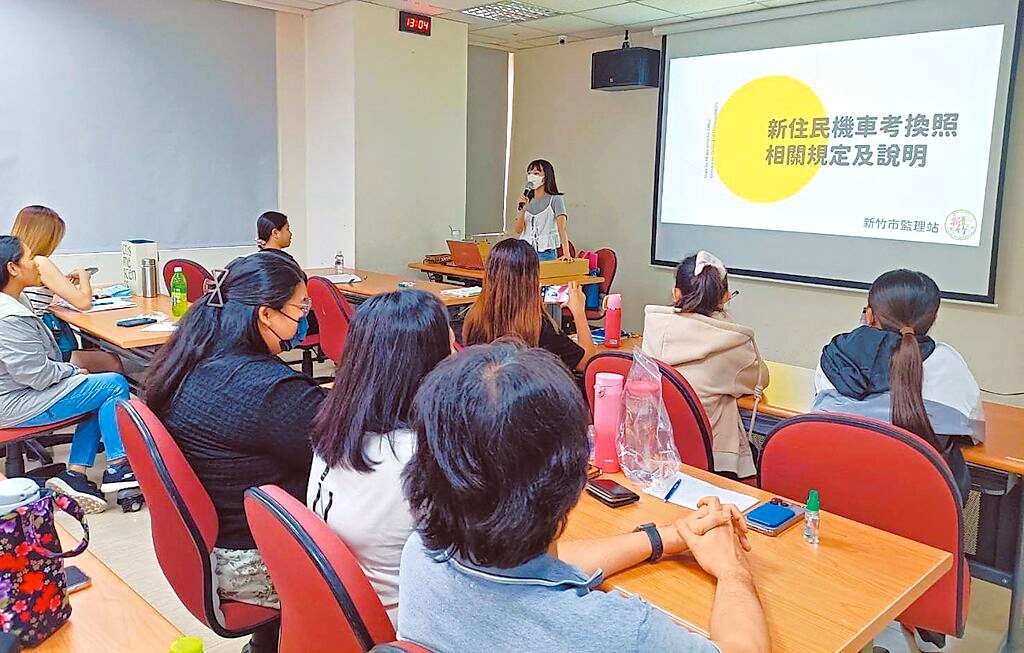 เจ้าหน้าที่กองทะเบียนยานยนต์เขตซินจู๋ พื้นที่รับผิดชอบรวมนครเถาหยวนด้วย กำลังให้ความรู้แก่ผู้ตั้งถิ่นฐานใหม่และแรงงานต่างชาติที่สมัครสอบใบขับขี่ (ภาพจาก chinatimes.com)