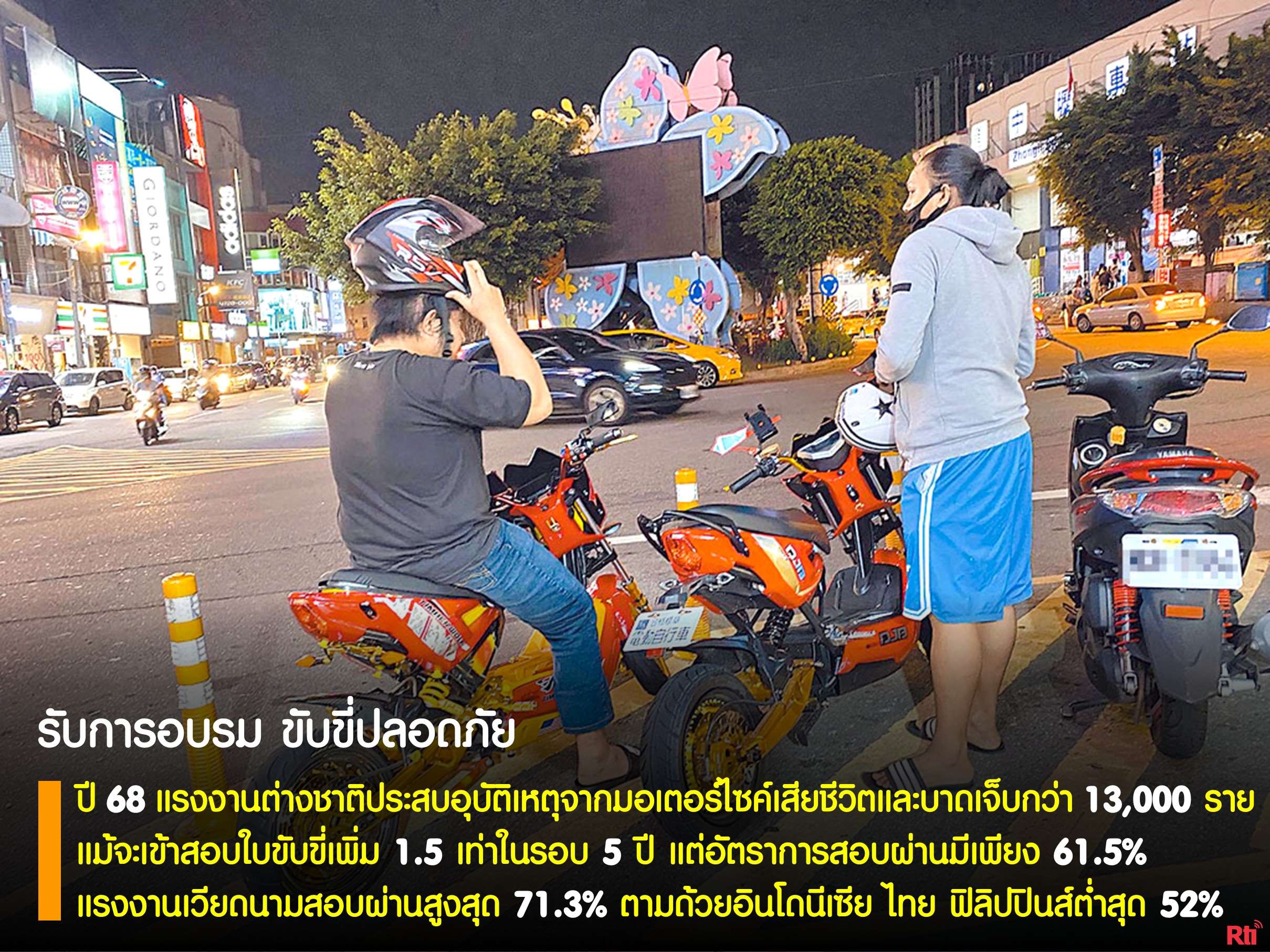 แรงงานต่างชาติสอบใบขับขี่เพิ่ม 1.5 เท่าในรอบ 5 ปี ขณะที่อุบัติเหตุพุ่งตาม ปีที่แล้วมีผู้เสียชีวิตและบาดเจ็บกว่า 13,000 ราย (ภาพจาก chinatimes.com)