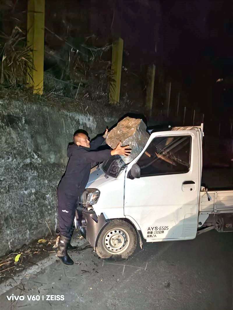 4. เฉียดตายหวุดหวิด! หินยักษ์หนักกว่าร้อยกิโลถล่มใส่รถกระบะกลางภูเขาเหมียวลี่ กระแทกกระจกหน้าเต็มแรง แต่คาอยู่ที่เสา A ช่วยชีวิต 2 แรงงานฟิลิปปินส์รอดปาฏิหาริย์
