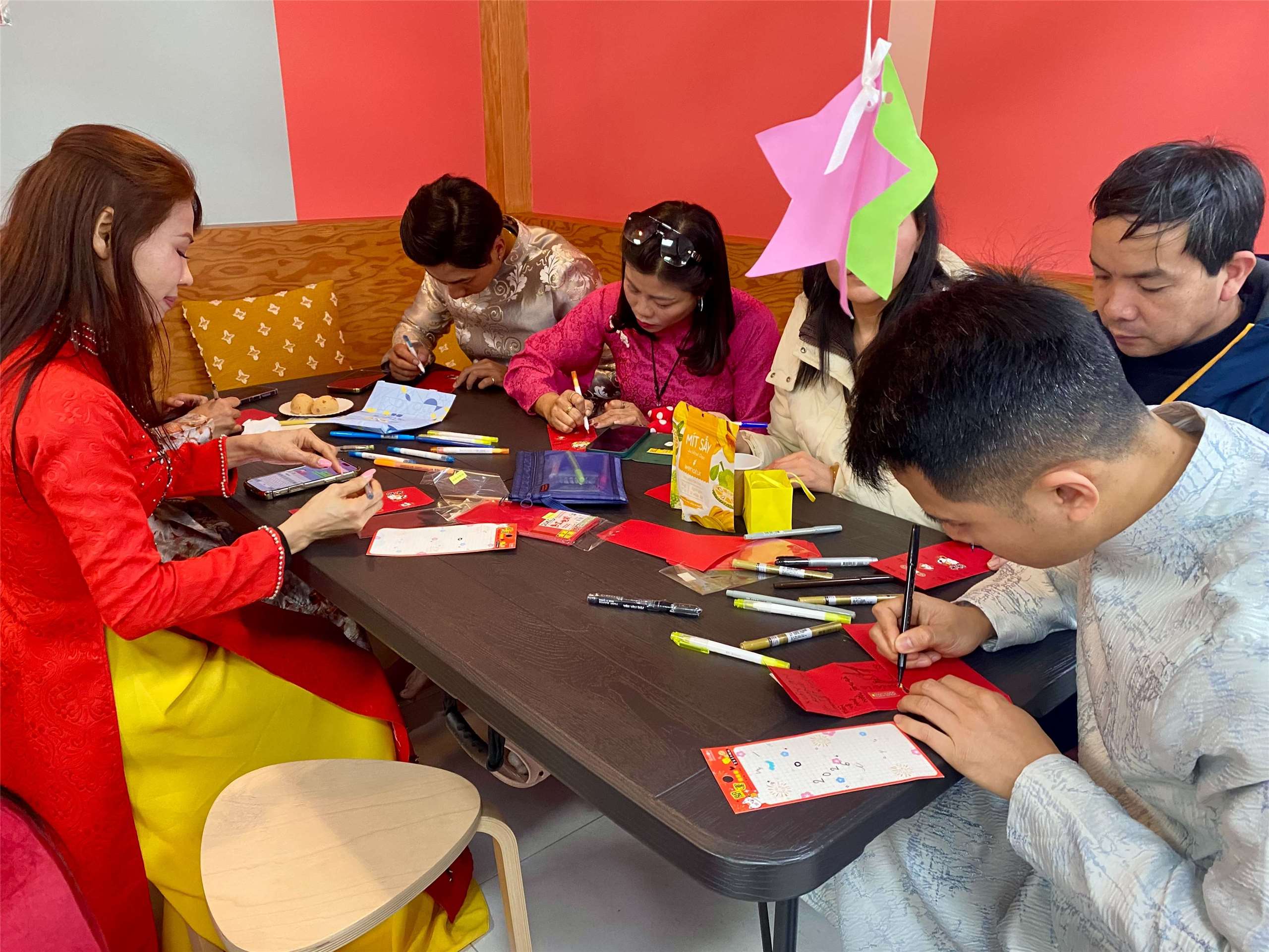 Hoạt động trang trí phong bao lì xì và bốc thăm may mắn tại #Wo_Space (ảnh: Thu Trang)
