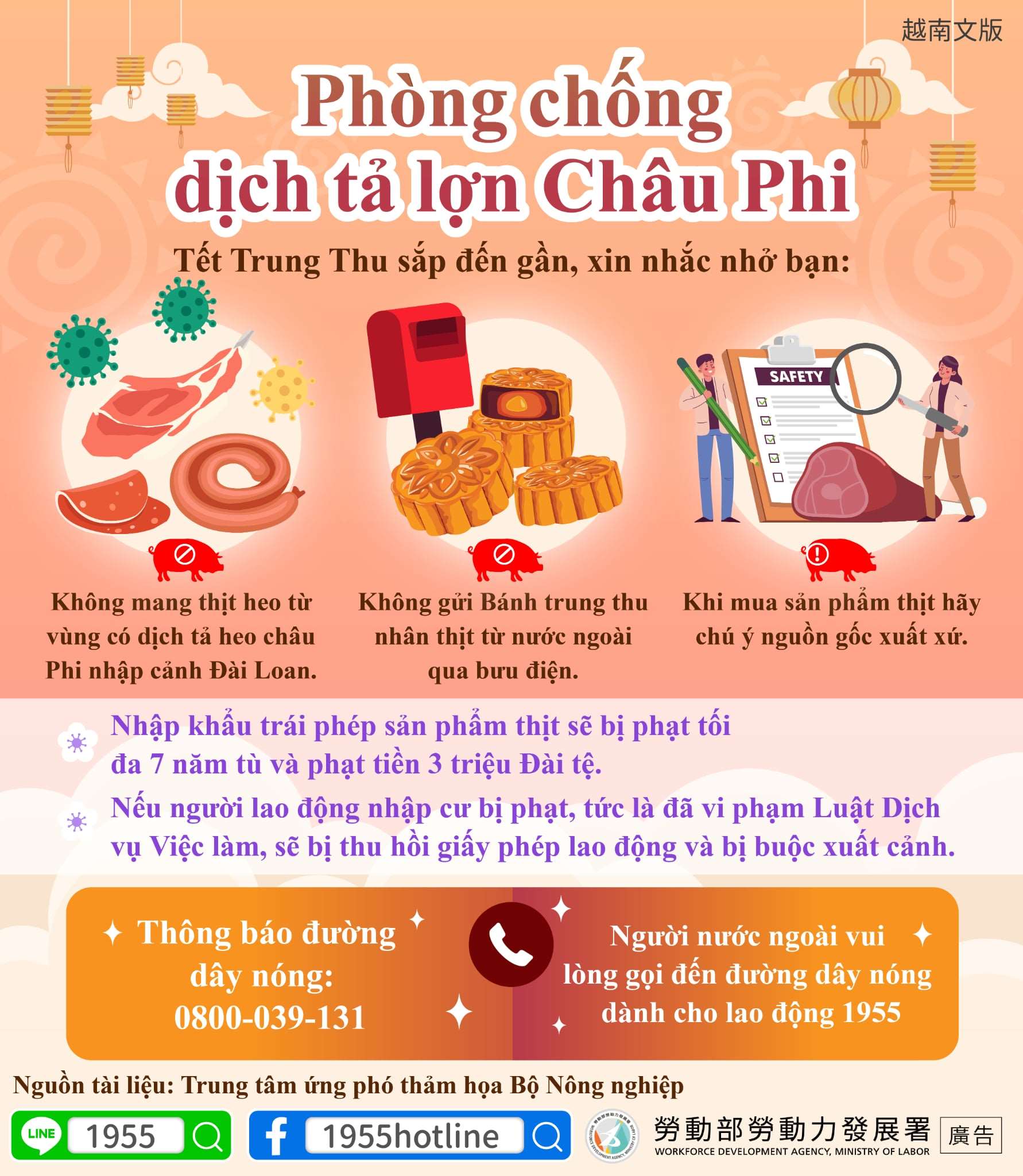3. Chung tay phòng chống dịch tả heo châu Phi! Đừng mang sản phẩm thịt nhập cảnh Đài Loan!