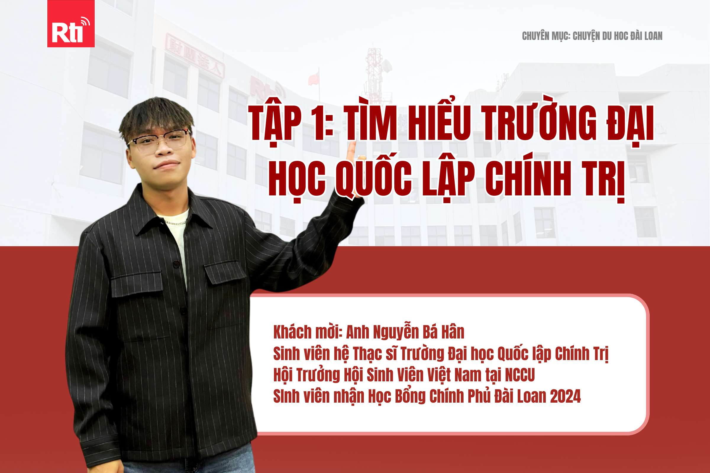 Nằm ở khu vực Đài Bắc, trường Đại học Quốc lập Chính Trị (NCCU) là một trong những trường đại học hàng đầu của Đài Loan, thu hút rất nhiều sinh viên quốc tế. Trong tập đầu tiên của chương trình “Chuyện du học Đài Loan”, anh Nguyễn Bá Hân, sinh viên hệ Thạc sĩ và hiện là Hội trưởng Hội sinh viên Việt Nam tại NCCU, sẽ chia sẻ với chúng ta về trải nghiệm học tập, sinh sống, cơ hội việc làm và cộng đồng sinh viên Việt Nam tại trường.